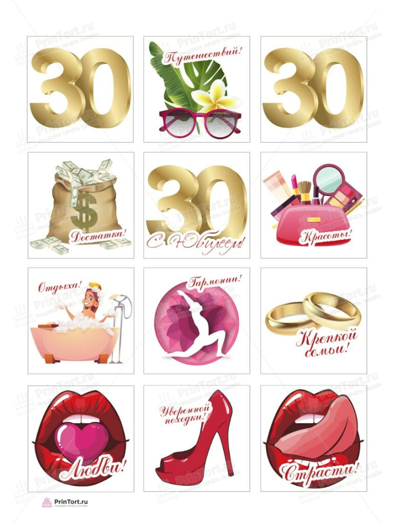 Картинка для торта «Юбилей Девушке 30» — PT106481