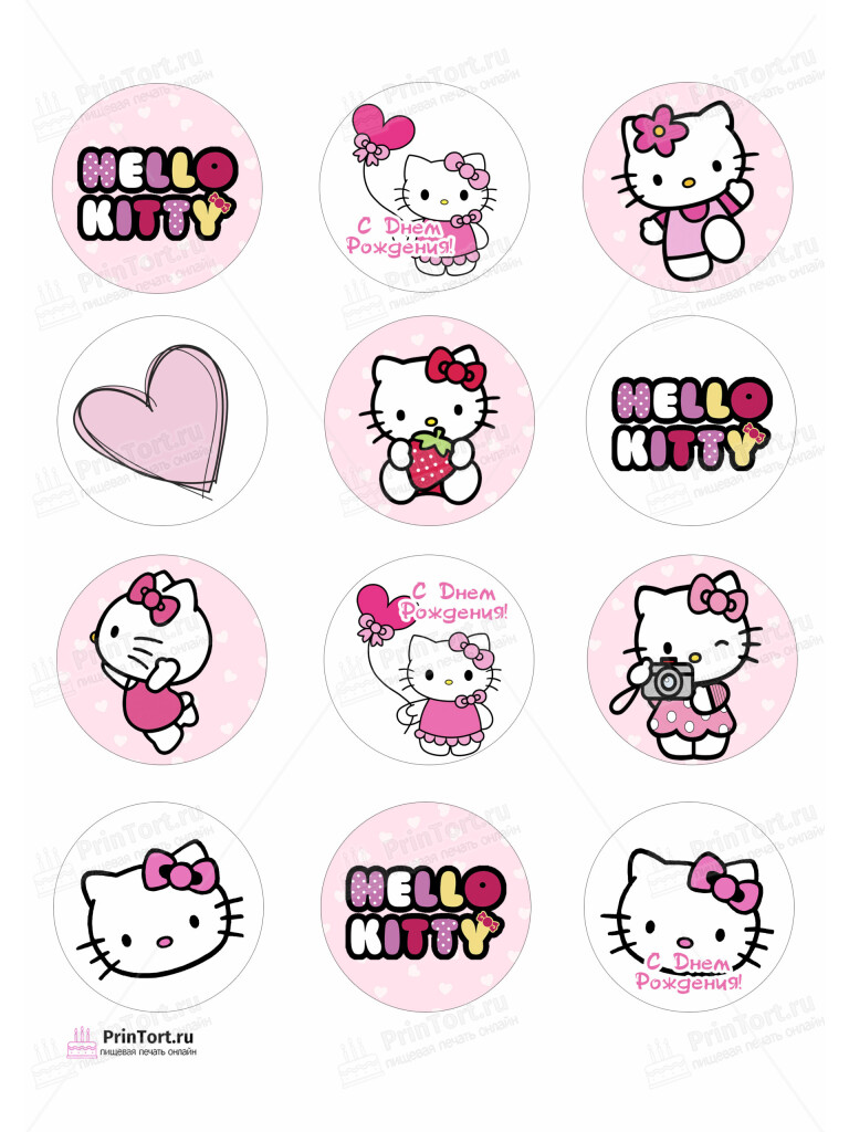 Картинка для капкейков «Хэлло Китти (Hello Kitty)» — PT104057 — Вафельная бумага толстая
