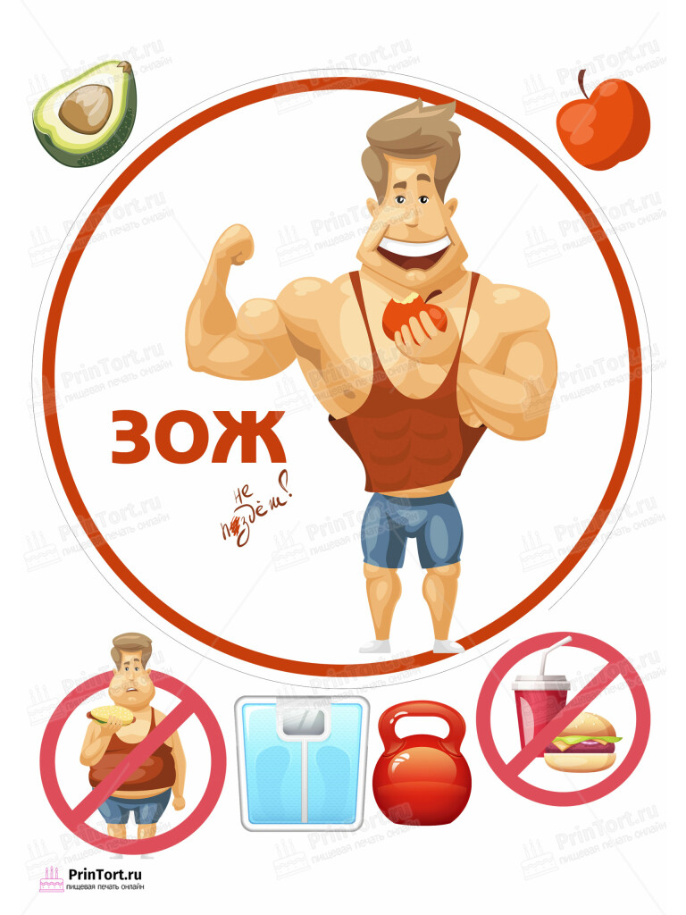 Картинка для торта «ЗОЖ» — PT104140 — Шокотрансферная бумага